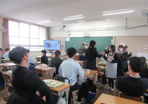 今日の献立は、ごはん・牛乳・ヤンニョムチキン・ほうれん草ナムル・中華コーンスープです。
