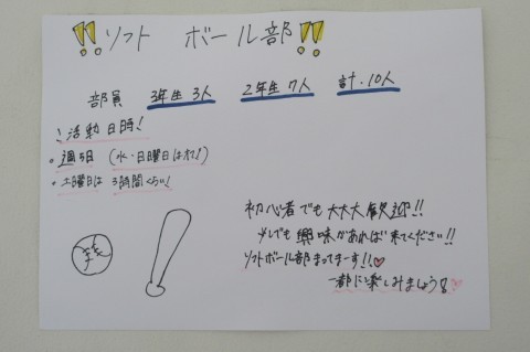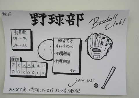 写真は上から男子バスケットボール部・ソフトボール部・軟式野球部のポスターです。