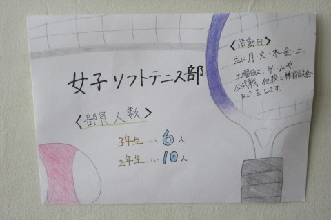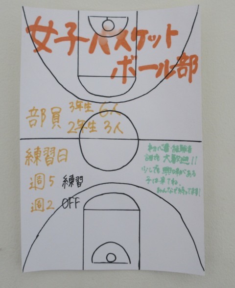 写真は上から、女子ソフトテニス部・女子バスケットボール部のポスターです。