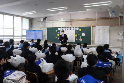 新入生は、教科書をもらった後、教室で学活を行いました。