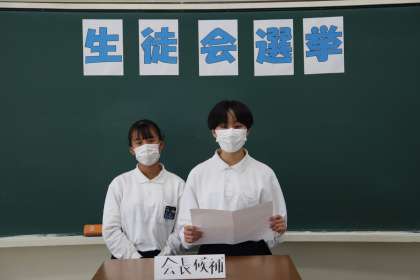 生徒総会に引き続き、「後期生徒会役員選挙」の立会演説会を行いました。