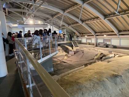 断層の説明をよく聞いていました。メモリアルハウスを見て地震体験コーナーに行きます。