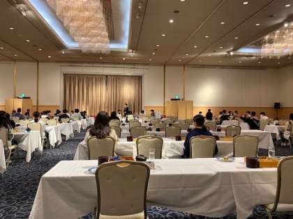 レク準備のために夕食会場にて待機中です。