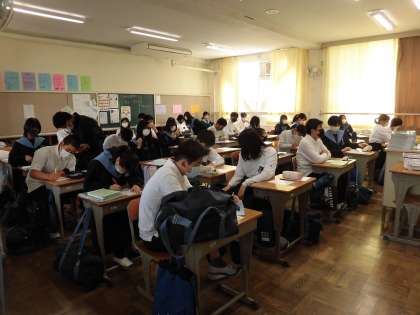 朝ドリルをしている間に、健康チェックカードを点検しているクラスもあります。
