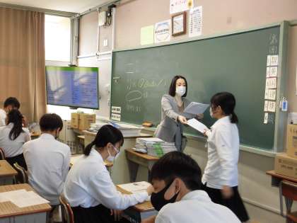 2年1組は、英語のテストを返却中でした。