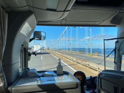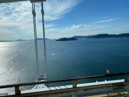うどん学校を卒業し、倉敷に向かっています。瀬戸大橋を渡っています。