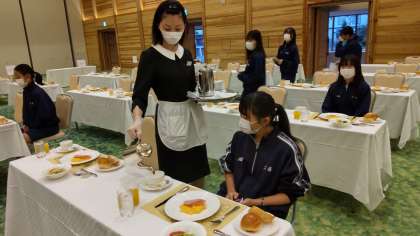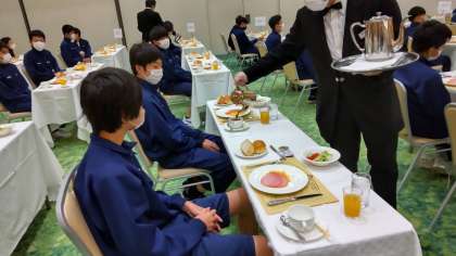 朝食準備中です。コーヒーか、紅茶を選びます。