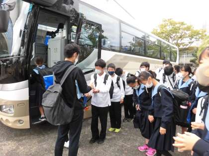 手指の消毒をして、バスに乗り込みます。