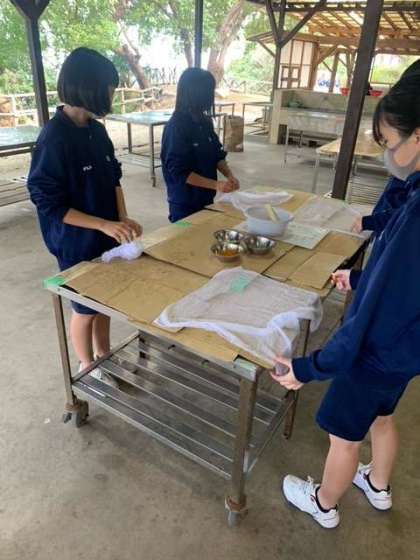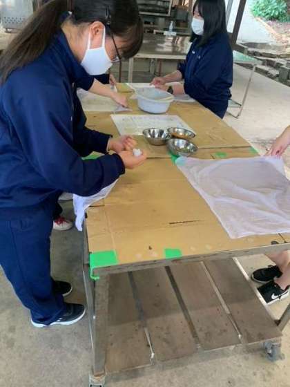 まずはどんなデザインになるのか予想しながら布に模様をつけています。