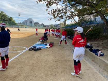 ソフトボール部も、学校で練習試合をしていました。
