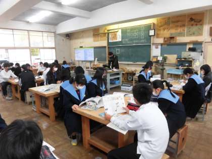 1年生で、技術室での授業がありました。この教室での授業は2回目だそうです。小学校にはなかった特別教室ですね。道具は、慎重に丁寧に扱ってくださいね。