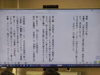 和歌の学習です。万葉集のところです。「防人」は、社会科でも学習しましたね。