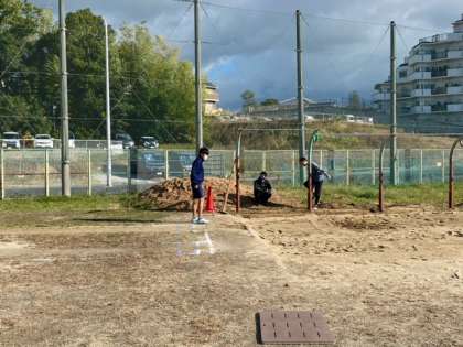 陸上部は、種目に分かれての練習です。跳躍、短距離に投てきです。