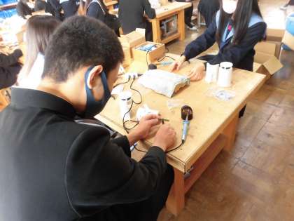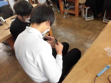ランタンの完成が近づいてきました。はんだ付けは、やけどをしないように気を付けてくださいね。