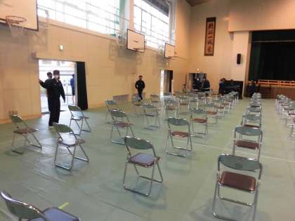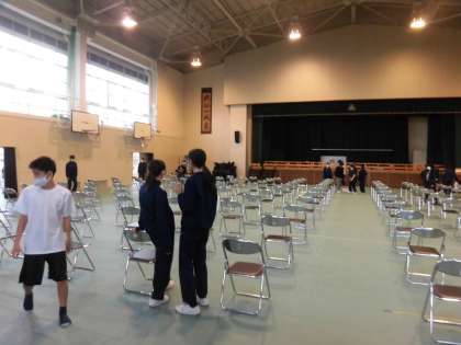 リハーサルが終了し、放課後に生徒会役員や運動部の人たちが、明日の会場準備をしてくれました。いつもありがとうございます。よいコンクールになってほしいですね。
