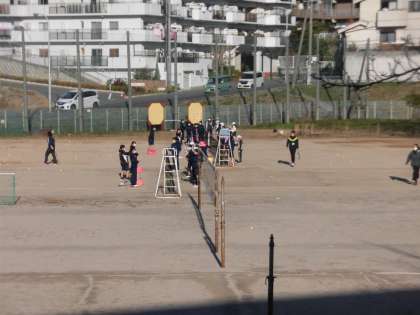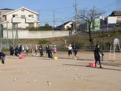 ソフトテニス部は、この時前衛の練習をしていました。