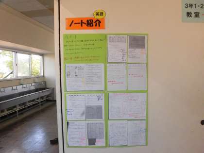 現在、全学年でノート掲示を行っています。まずは3年生の英語からです。