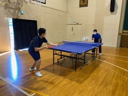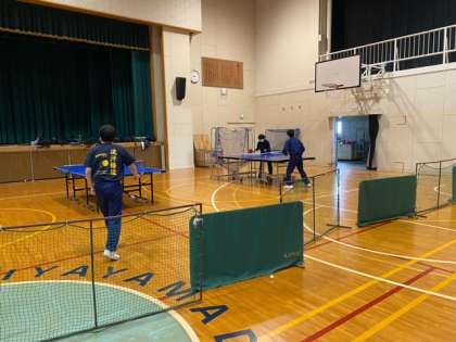 体育館で卓球部が全面を使って練習していました。体育館といえども、寒いのでしっかりと身体を温めて練習してくださいね。