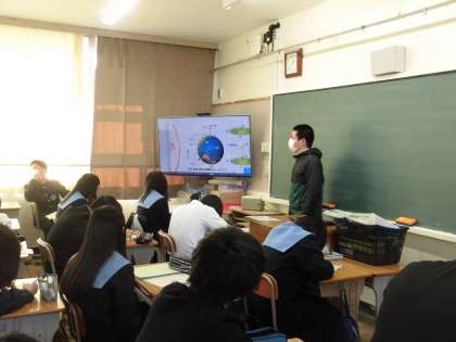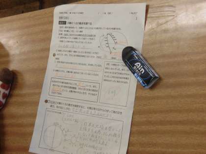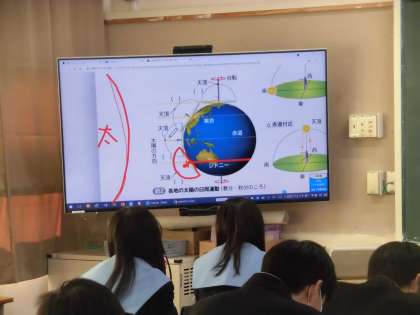 太陽の日周運動の学習です。太陽が、日本での動きだけでなく、場所が変われば違うことが分かったでしょうか。