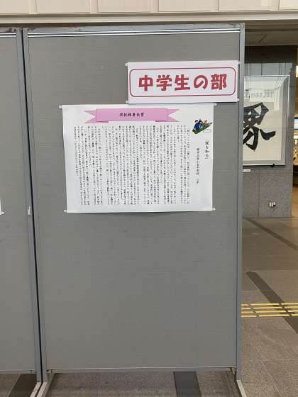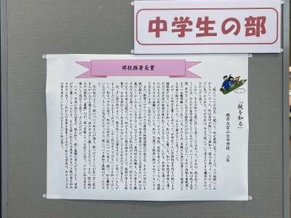 現在、堺市役所で、「税についての作文」の受賞作品が掲示されています。この度、本校の3年生が「堺税務署長賞」をいただきました。素晴らしいです。