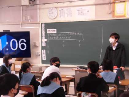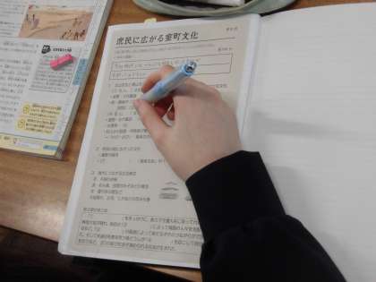 社会科の授業が始まりました。室町時代の文化の特色を確認しています。