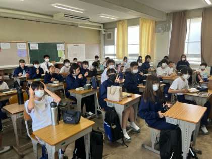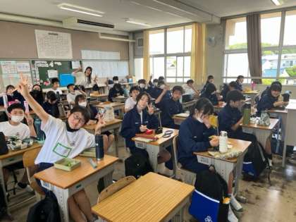 帰校しお昼ご飯を食べています。 1組と2組の様子です。