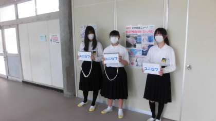 おはようございます。生徒会で、昨日13日からユニセフ募金活動をしています。17日まで行うとのことです。明日以降もよろしくお願いします。