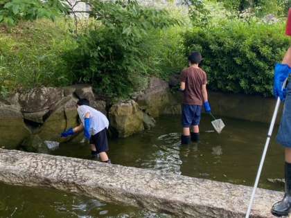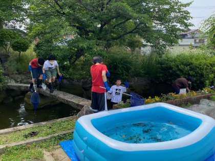 先生方と1年生の有志で、よろこびの丘の池の掃除をしてくれました。