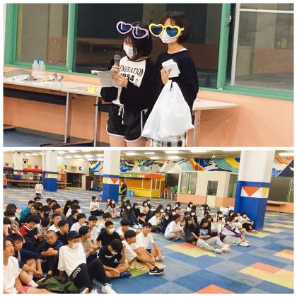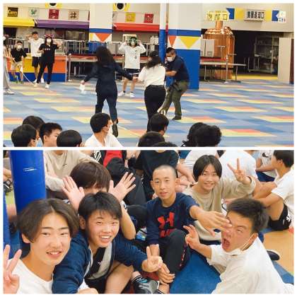 55期生は宿泊行事は初めてです。もちろんレクも初めてですが、企画も盛り上がりも素晴らしいです!借り人競争では学年主任の先生も参加しました。
