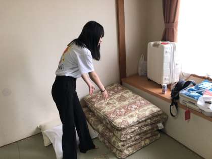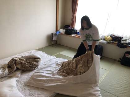 身支度と、部屋の片付けをしています。