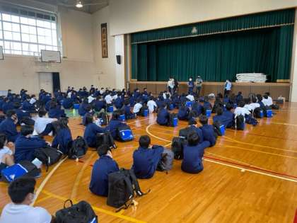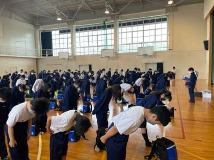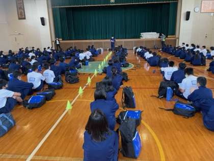 1年生は校外学習で関西サイクルスポーツセンターに行ってきます。出発式は生徒主体で進んでいきます。中学生になって初めての校外学習です。みんなで協力して楽しみましょう!