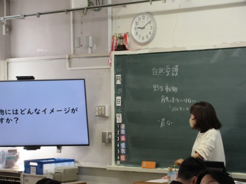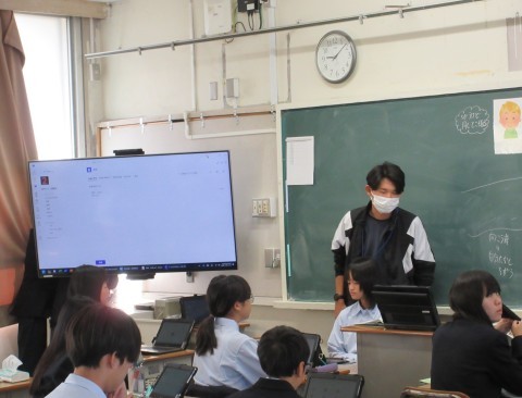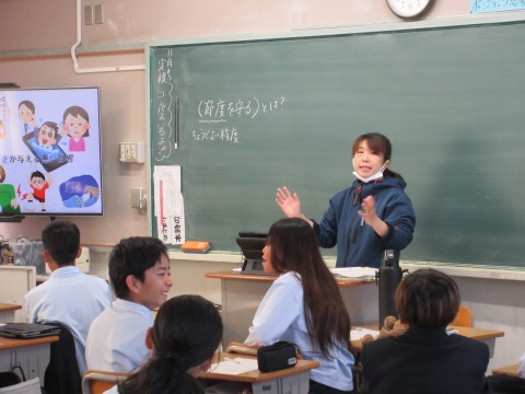 3時間目に英語科の水野先生が1年2組で研究授業を行いました。