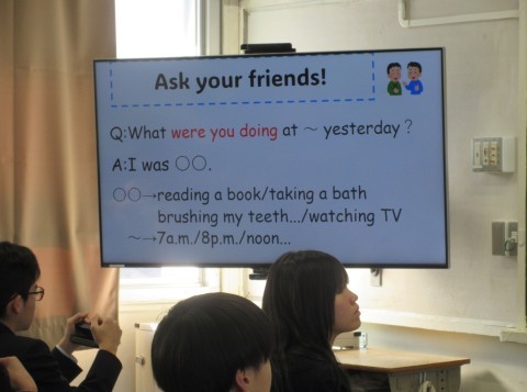 英語の授業では、ペアになって読む練習をしていました。元気のいい声が教室に響いていました。