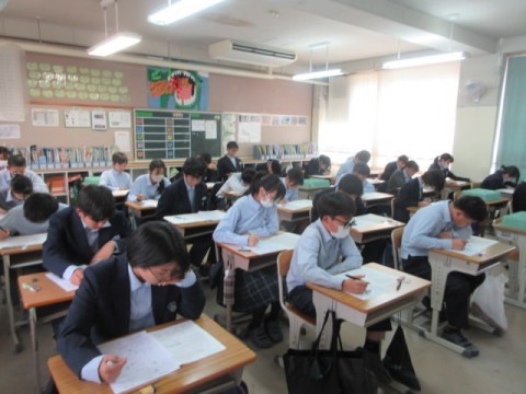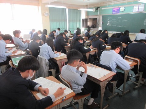 図書室で期末テストに向けて、各々の課題に取り組んでいます。