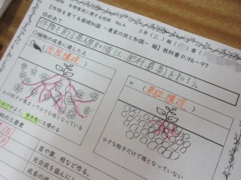 「作物を育てる基礎知識(土・肥料・農薬)を知ろう」が学習のめあてです。