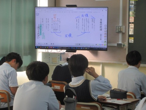 「月夜の浜辺」で表現に注目して詩を読み深めることが今日の目標です。