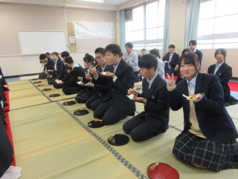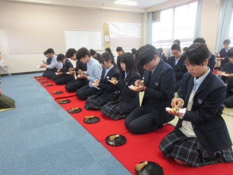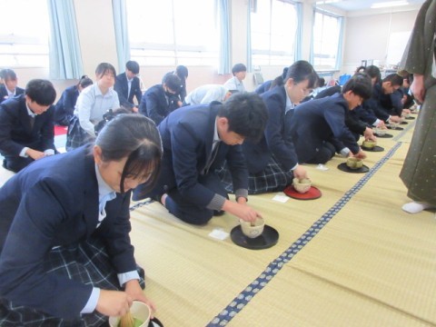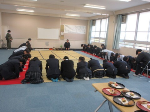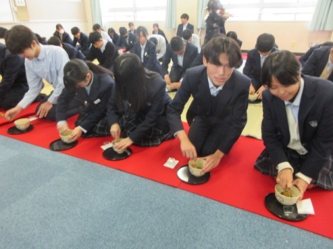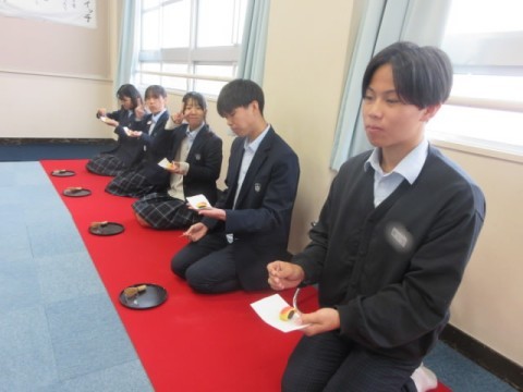 茶の湯のにおける「わび」「さび」を感じながら、 色々な作法を学びました。