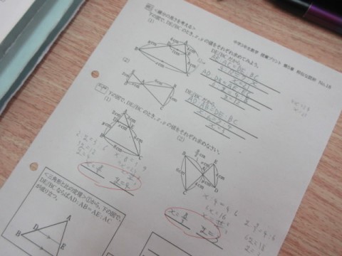 「三角形の比の定理を活用した」練習問題をしています。