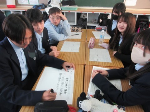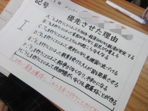 いくつかの取り組みの中から個人の意見を出し合い、グループで話し合ってまとめています。
