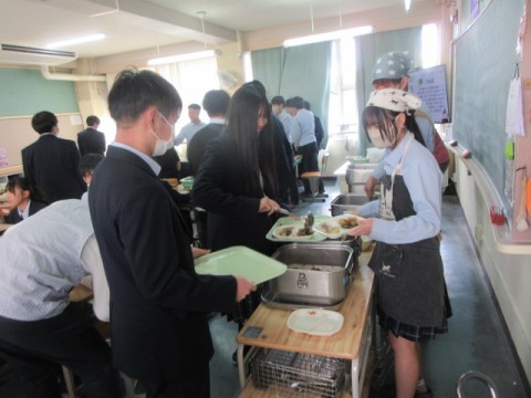 3年生の給食準備中です。