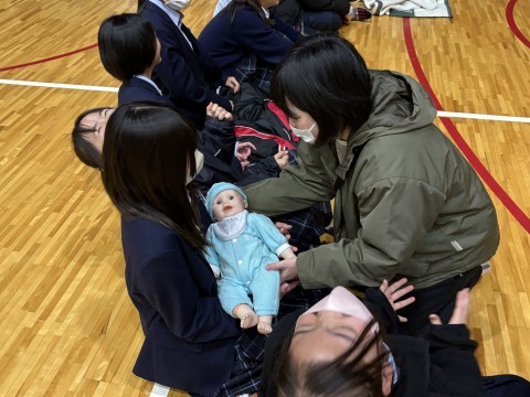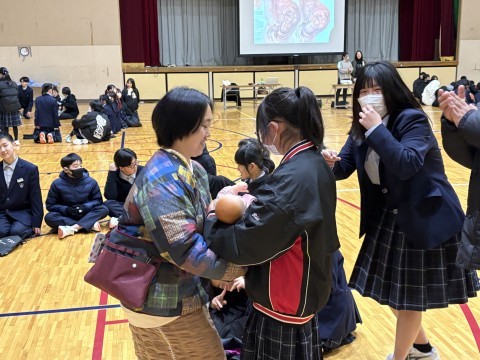 赤ちゃん人形をつかった抱っこ体験を行いました。
