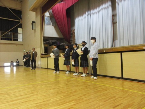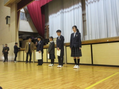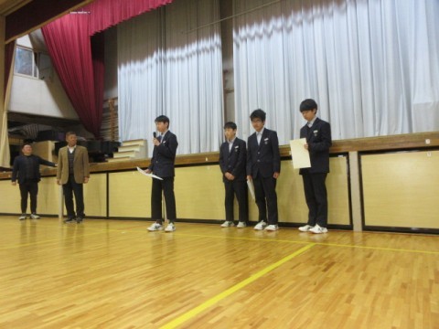 修了式では、2年生の学代の代表(男女)に1年間の振り返りをしてもらいました。