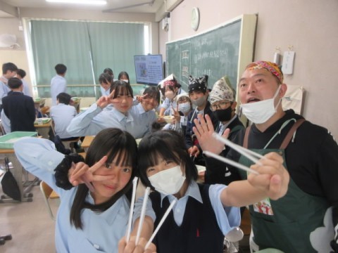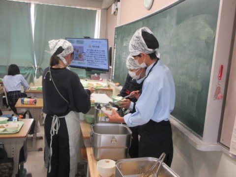 2年生の給食準備中の様子です。
