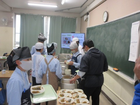 1年生の給食準備の様子です。