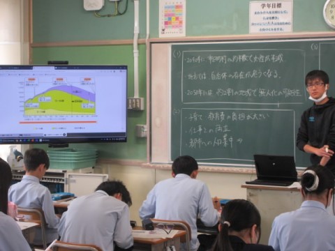 「少子高齢化が、自分たちの未来の生活にどんな課題をもたらすかを考えよう」が今日のめあてです。