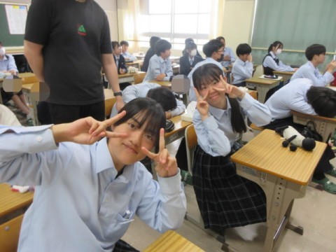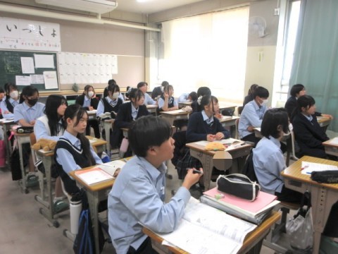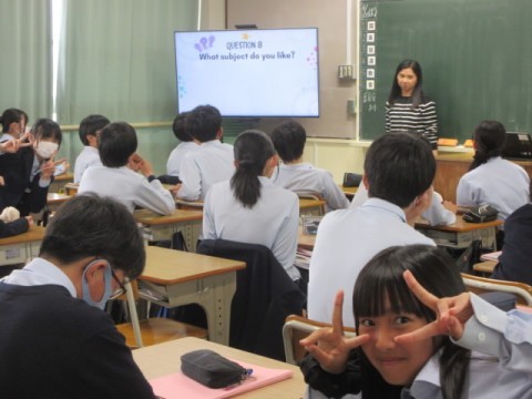 ネイティブスピーカーの先生の質問に各々が答えています。