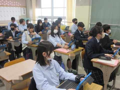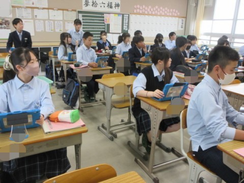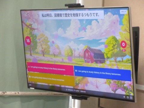 iPadを活用し、正しい英文を選ぶ問題にチャレンジしています。
