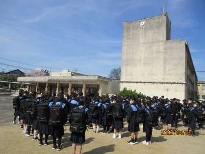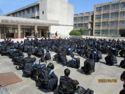 入学式の説明を受けて,いよいよ体育館へ入場です。