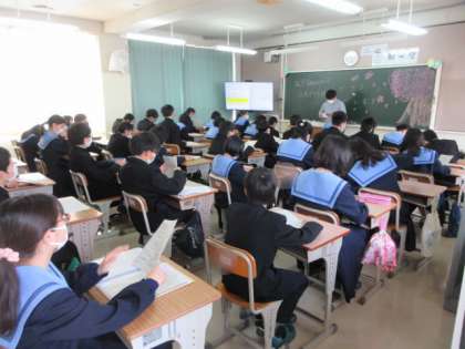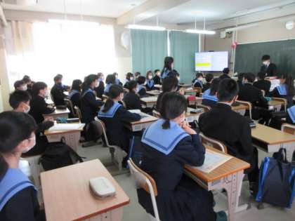 赴任式、始業式、対面式の後、50分の学活で先生の話を聞いたり、自己紹介をしたりしています。