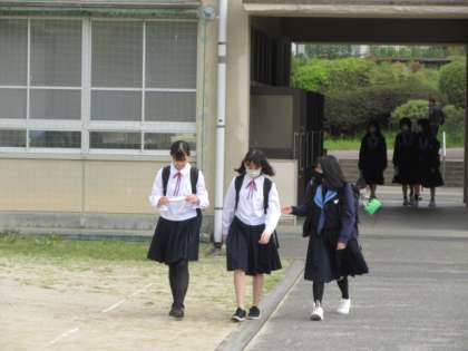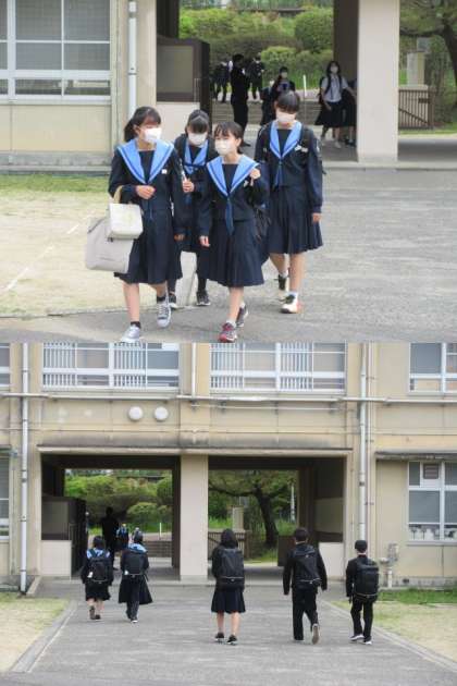 暖かい日が続いていて、女子は合服、男子はカッターで登校する生徒が増えてきました。